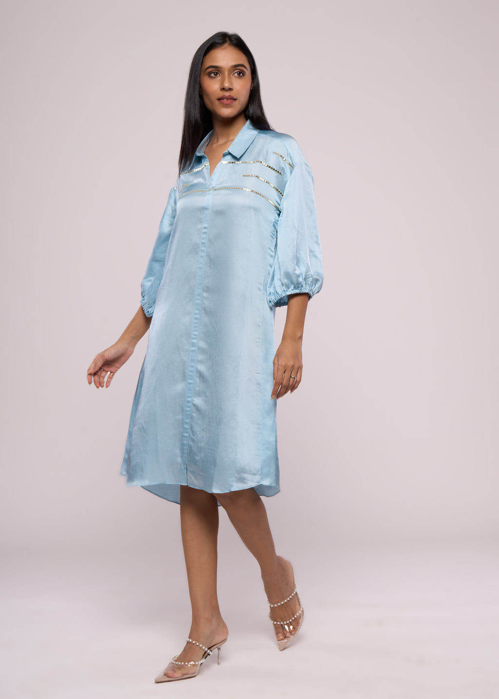 SILVER SPARKLES BLUE SHIRT DRESS